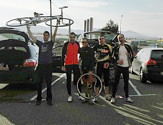 Al arrancar, cerca de las 2 de la tarde, Polus nota algo raro en la rueda trasera (Roval con 5 meses de uso)...se ha roto un radio pero debido a que el nucleo trasero se ha encasquillado y la rueda no gira libre...con lo cual fin de la ruta para Polus. Como Topo se queda en su pueblo, Polus al final puede seguir con la rueda trasera de Topo....eso es amistad y compañerismo, lo demas tonterias !!